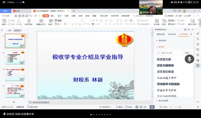 在税收学专业(专升本)分会场,林颖教授从高教发展背景与高教改革切入,介绍了税收学专业的培养方案、升学和就业情况;介绍了学院优秀的团队队伍、丰富的社会资源以及以生为本的人才培养模式。同时,林颖教授针对员工提出的考证和升学问题,进行了深入分析,给出了自己的建议。