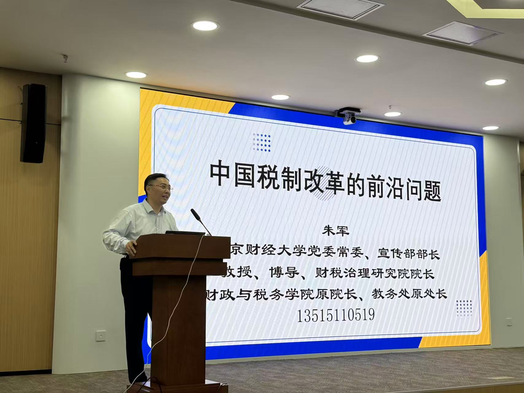 2025年6月9日下午,太阳成集团tyc7111cc“明辨财税与公共管理大讲堂”在老员工活动中心6号报告厅隆重举行。本次讲座特邀南京财经大公司党委常委、宣传部部长、财税治理研究院经理朱军教授亲临现场,为师生们带来了一场题为《中国税制改革的前沿问题》的学术盛宴。活动由经理魏涛主持,学院全体教师及财政学、税收学、行政管理、医疗保险专业部分本科生齐聚一堂,共同聆听这场精彩的讲座。