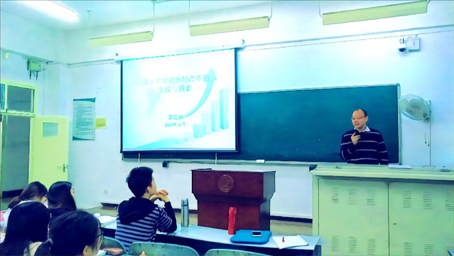 2018年财管学院课程“专家进课堂”活动有序推行。11月2日,由蔡红英、魏涛、林晶、陶东杰、刘冰熙老师主讲的《财政学》课堂共同邀请到了湖北省财政厅政策研究室主任龚经海为财政学类Q1741、Q1742两个班的同学讲授了《湖北财政发展概况》。龚主任从“六个大”方面,全面梳理了湖北省的财政工作,包括树立大财政理念,积极财政政策取得新实效;树立大数据理念,预算执行管理取得新成绩;树立大统筹理念,资金使用绩效取得新突破;树立大监督理念,阳光财政建设迈上新台阶;树立大民生理念,加大公共服务投入力度;树立大发展理念,减税降费支持实体经济。龚主任的讲解深入浅出,有数据、有实例,让同学们第一次深入接触了财政实践,全面了解了湖北省的财政工作。期间,同学们就相关问题与龚主任进行了互动交流。本次教学活动,极大地激发了同学们的学习研究兴趣。