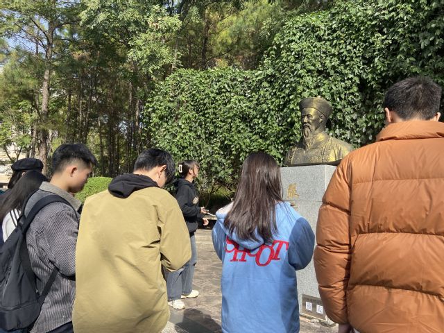 本次活动选定了一系列具有经院特色和廉政文化元素的校园文化景点,包括校训石、张之洞雕像、劝学魔方雕塑、中兴广场、校史馆、求索桥、马克思雕像、书卷芳华雕塑、孔圣园等,共同形成“清廉校园行”路线。每个景点还设置了与校园文化、廉政文化、党纪法规相关的知识竞答环节。活动过程中,支部党员们扫码聆听解说音频并参与知识竞答,一同回顾了校园校史相关人物,如张之洞、马克思、孔子等等,现场气氛活跃。