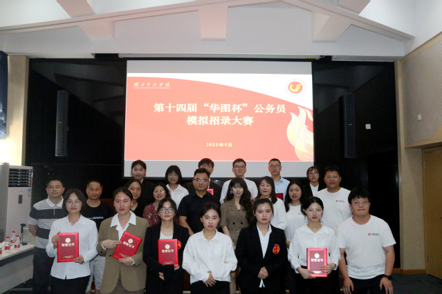 本网讯(通讯员 王有梅)5月26日下午,第十四届“华图杯”公务员模拟招录大赛决赛在教五二号报告厅成功举办。此次活动由太阳成集团tyc7111cc主办,合作方为华图教育湖北分校。湖北华图武汉分校董事长杨月平、江夏分校董事长黄姗姗、团队分院教学教研主任马少坤、团队分院言语组学科组长胡思雨、项目运营总监 江上游,公司党委书记黄华、党委副书记夏菲、专任教师赵小燕、陈戈寒、熊鹰等出席活动。