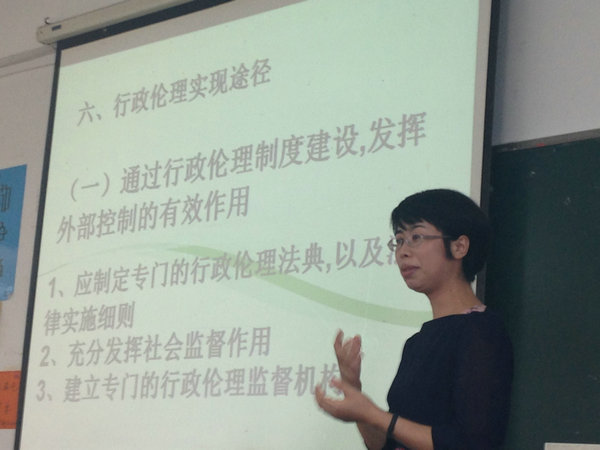 10月24日,公共管理学院(行政Q1241)班开展了实务专家进课堂讨论交流活动,邀请了政府实务部门的同志来班级讲授了《公务员行政伦理困境及其化解》并与同学进行了交流。政府实务部门的同志结合公务员的实际工作从学习行政伦理的重要性、公务员可能面临的伦理困境、行政行为选择的伦理模式、行政行为选择客观标准和行为界限、解决行政伦理实践中的利益冲突和伦理困境及行政伦理实现途径等六个方面讲述了公务员实际工作中可能遇到的伦理困境以及化解的途径和办法,着重突出了实践性。这一教学形式改进了教学方式,增强了学习效果。